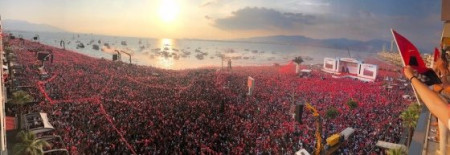 У турецькому Ізмірі сотні тисяч осіб вийшли на вулиці на знак підтримки опозиційного політика Мухаррема Індже з Республіканської народної партії.