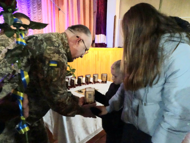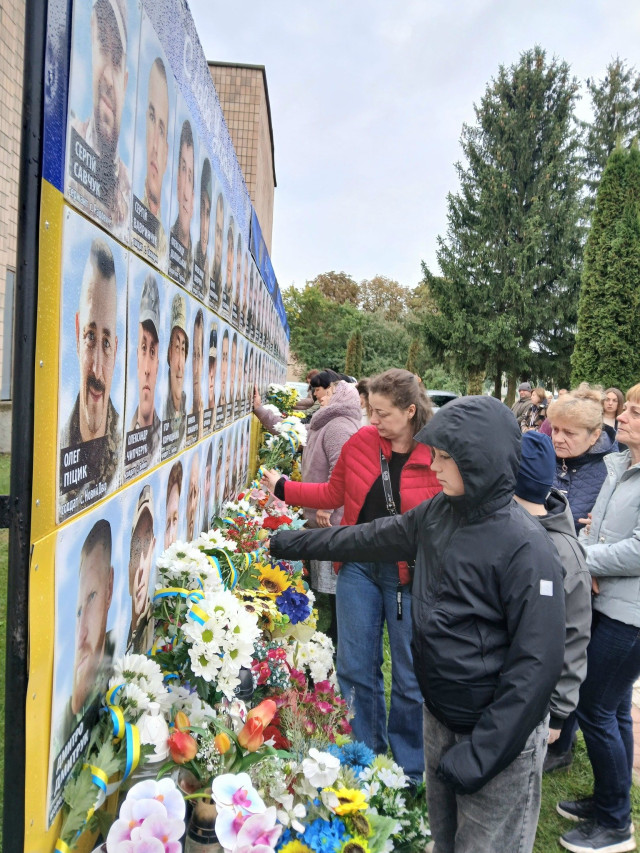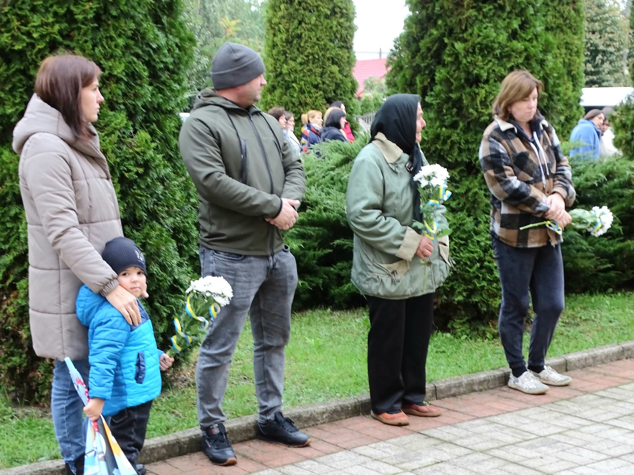 Біля дошки пам’яті воїнам-землякам зібралися рідні, представники влади та громадськість. Хвилиною мовчання вшанували світлу пам’ять полеглих, звучав Державний гімн України, а до світлин Героїв та пам’ятних знаків борцям за незалежність України лягли квіти.Кожне слово, кожна пісня, які звучали цього дня, були наповнені особливим змістом – вони стали проявом вдячності нашим захисникам і глибокої пошани до тих, хто віддав життя за Україну.Особливим і водночас щемливим моментом стало вручення державних нагород рідним воїнів – орденів «За мужність» ІІІ ступеня (посмертно).Нагороди отримали родини воїнів Сергія Олександровича Попрійчука, Дмитра Яковича Дмитрука, Ігоря Валерійовича Корицького, Олександра Олександровича Чипчерука, Сергія Анатолійовича Шпакова, Сергія Михайловича Савчука, Олександра Васильовича Шевчука, Олександра Валерійовича Дубіка.Також нагороди вручили військовослужбовцям: Володимиру Андрійовичу Новосаду – відзнаку Міністра оборони України «За поранення»; Івану Анатолійовичу Круку – орден «За мужність» ІІІ ступеня.