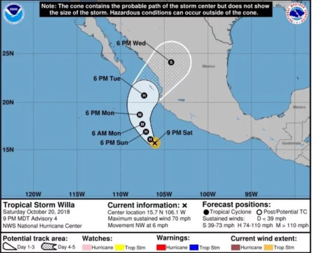 Ураган «Уілла» в Тихому океані досяг четвертої категорії з п'яти можливих за шкалою Саффіра-Сімпсона і продовжує наближатися до західного узбережжя Мексики.