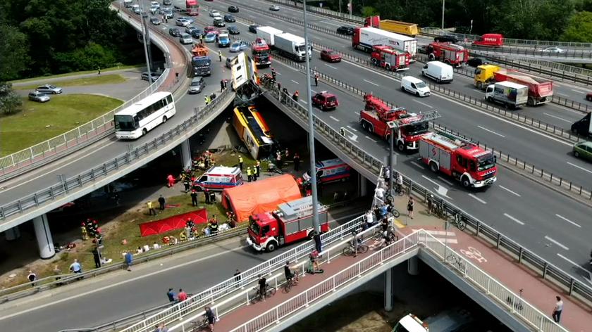 На місці працюють надзвичайні служби. Вже прибула швидка допомога і вертоліт.Канал TVN24 з посиланням на інформацію мерії повідомляє про одного загиблого. Інші ЗМІ наводять дані про щонайменше дві жертви. Також повідомляється про щонайменше 20 постраждалих. Попередньо мова йде про кількох людей у важкому стані.