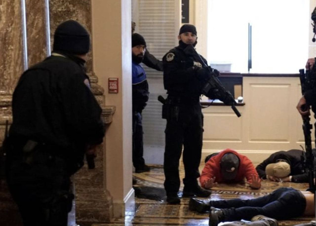 Віце-президент Пенс закликав протестувальників покинути будівлю. До Капітолію направляється поліцейський спецназ. Їдуть десятки машин.Навколо Капітолію тим часом триває величезний мітинг прихильників Трампа. Пробитися поліції буде дуже нелегко.Натомість Трамп жорстко висловився щодо Пенса, звинувативши вірного до нині соратника в тому, що у нього «не вистачило мужності, щоб зробити те, що він був повинен був зробити, аби захистити країну і конституції та не затверджувати результати виборів». Раніше Пенс відмовився слідувати пораді Трампа і втрутитися в процес верифікації голосів вибірників. Після чого, власне, і почався штурм Капітолію.
