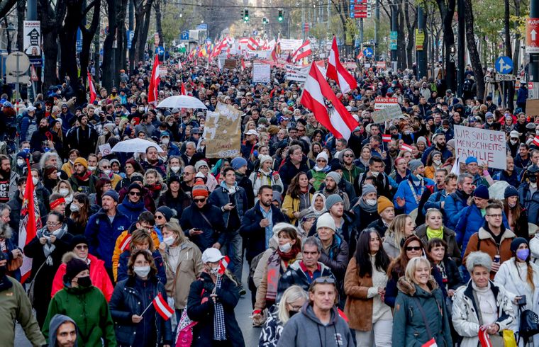 Столиця Австрії опинилася у центрі протестів проти COVID-обмежень. Під час акцій там чергували приблизно 1300 поліцейських. Упродовж мітингу протестувальники скандували: «Мир, свобода, жодної диктатури».