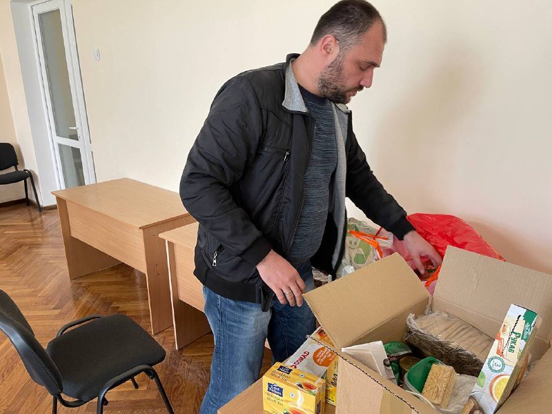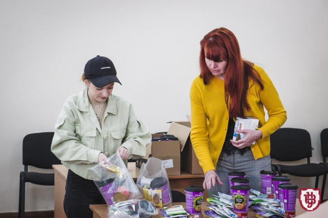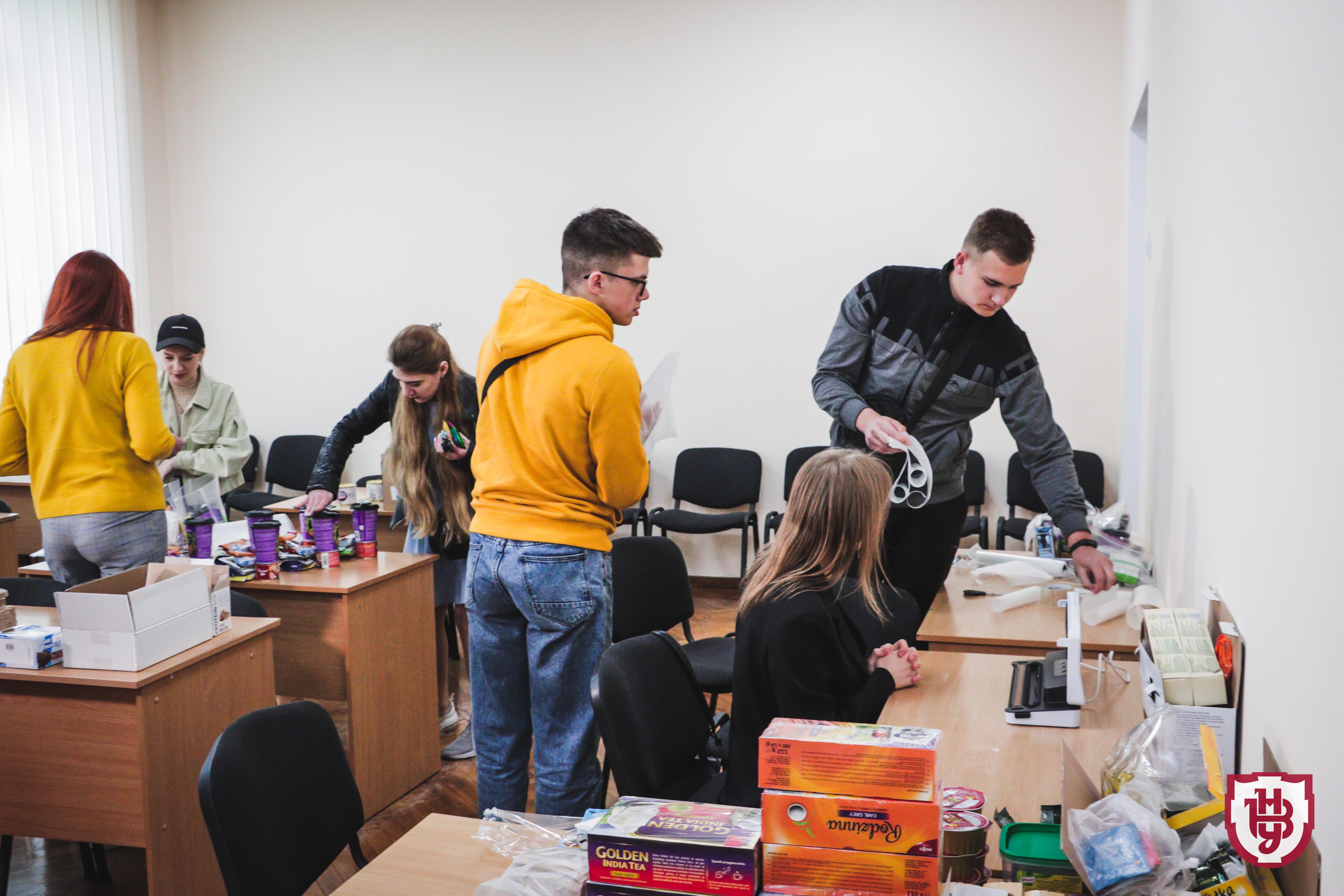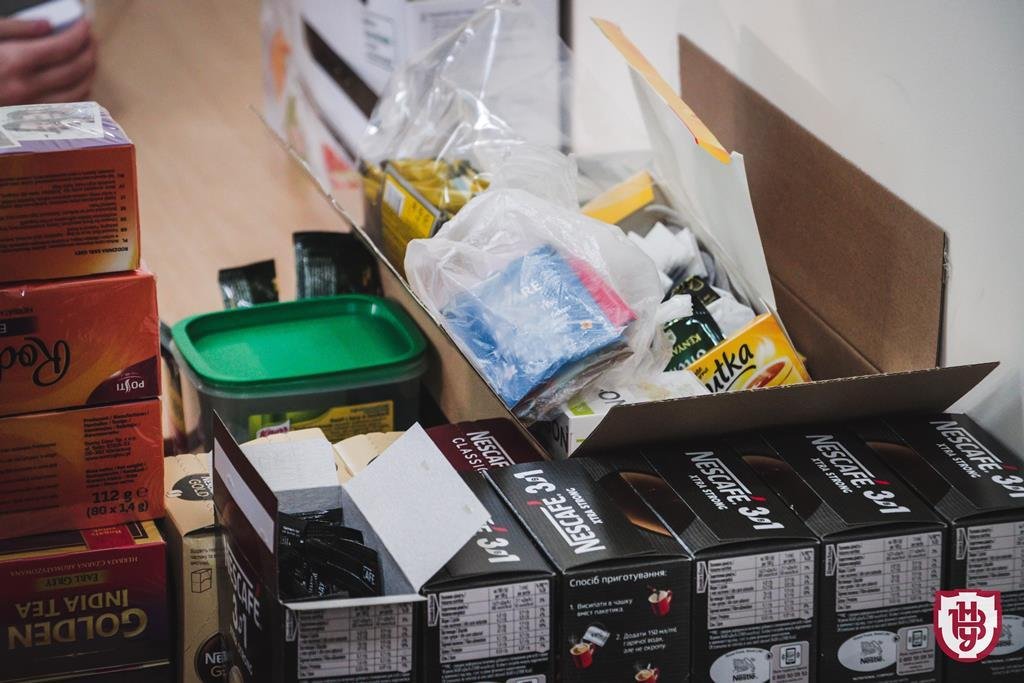 Викладачка розповіла, що в Університеті діє пункт збору гуманітарної допомоги для українських воїнів та внутрішньопереміщених осіб. Фасувати сухпайки запропонував один із військових.