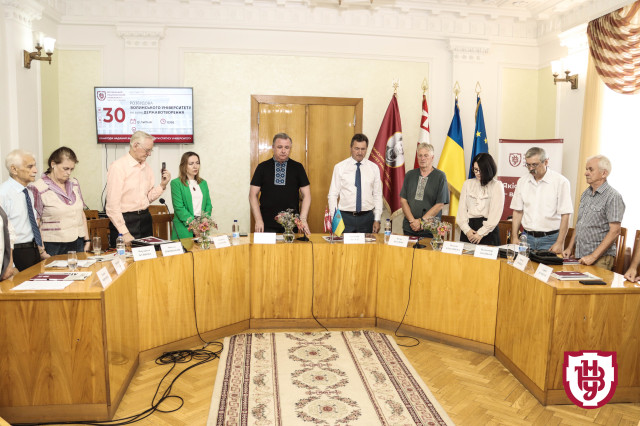 Розпочалося дійство з вшанування пам’яті Героїв України, які віддали життя у боротьбі з російським агресором, а також діячів, які зробили внесок у розвиток ЗВО, але, на жаль, не дожили до його 30-річного ювілею, повідомляють на сайті університету.