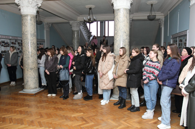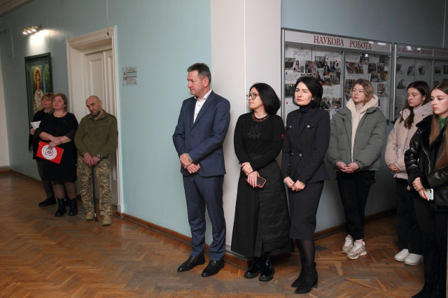 На початку заходу слово взяв ректор Анатолій Цьось. Він зауважив, що Університет активно співпрацює із Збройними силами України, а також подякував студентам й авторові виставки. «Ви небайдужі, патріотичні й допомагаєте ЗСУ. Перемога залежить не від когось одного, а від кожного і тієї роботи, яку ми робимо», – резюмував Анатолій Цьось.