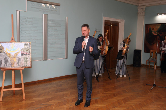 Руслан Кашаюк згадав про загиблого Героя Миколу Мялковського, якого він знав особисто. Автор виставки розповів про історію картин і те, що на них зображено. Руслан Кашаюк заявив, що військові та цивільні мають працювати пліч-о-пліч заради спільної Перемоги