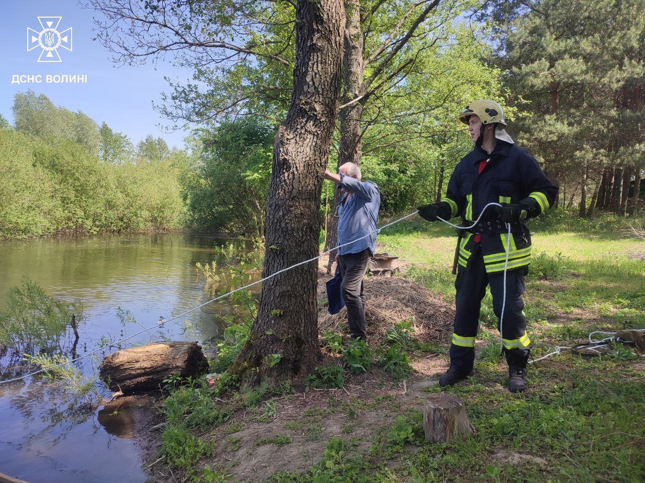 Відділення 1-ї Державної пожежно-рятувальної частини м. Луцька оперативно прибуло на місце події, один з вогнеборців одягнув спеціальний водолазний костюм та вплав дістався до рибалки, який перебував на відстані близько 30 м від берега. Людину благополучно доправили до берега, де йому надали допомогу медики.
