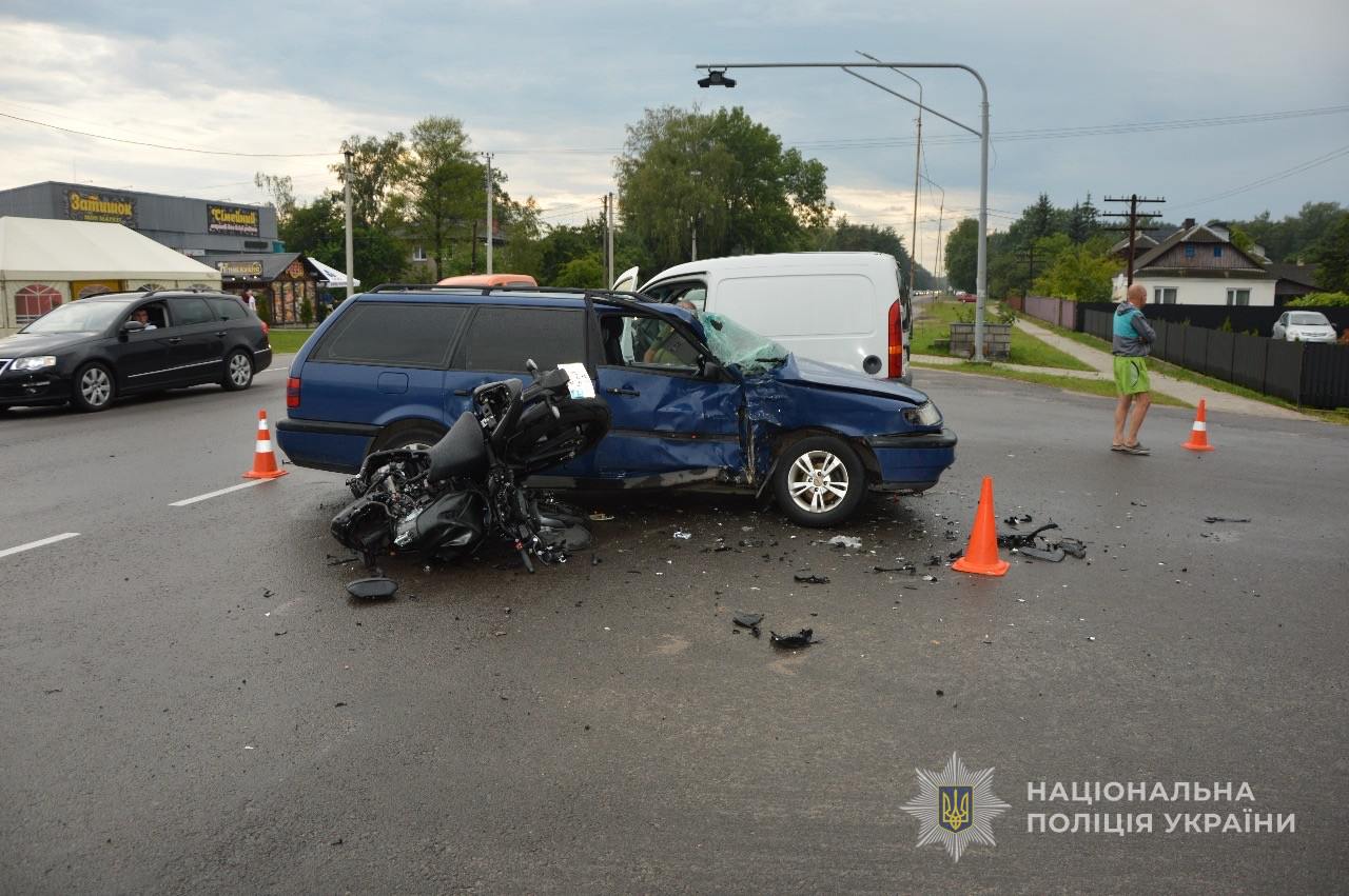 У водія двоколісного численні переломи та травма голови: на Волині авто зіткнулося з мотоциклом