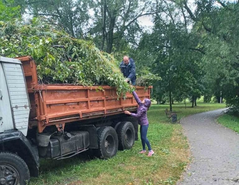 Уже до обіду 13 липня комунальники ліквідували наслідки негоди та вивезли дві вантажівки гілля.