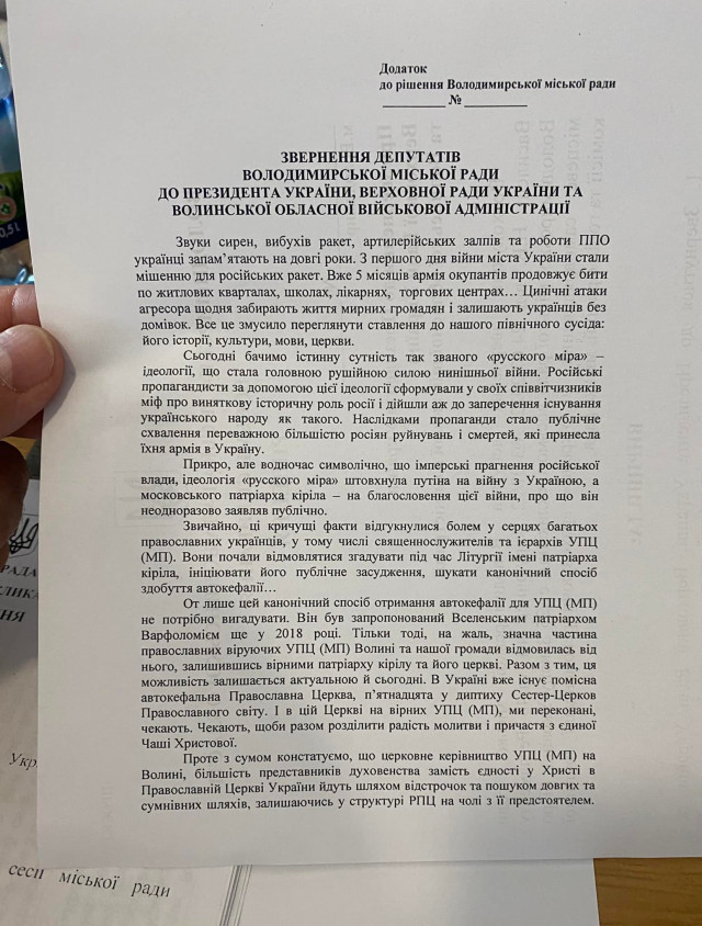Як ми писали, депутати Нововолинської міської ради під час сесії 14 липня звернулися до Президента України та уряду з вимогою припинити діяльність Української православної церкви Московського патріархату в Україні.