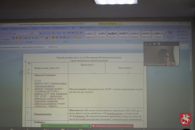 6 липня у Володимирській міській раді відбулось чергове засідання робочої групи по перейменуванню вулиць міста, на якому розглянули доопрацьовані нові варіанти назв вулиць, що підлягають перейменуванню та сформували остаточний список топонімів, котрі буде винесено на обговорення громадськості.