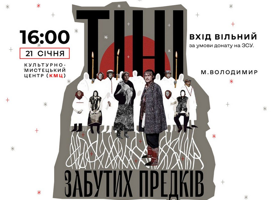 У Володимирі молодіжна громадська організація «44700» організовує кінопоказ стрічки Сергія Параджанова «Тіні забутих предків» у кінотеатрі культурно-мистецького центру. Охочих запрошують приєднатися до перегляду шедевра українського кінематографа 21 січня о 16:00.