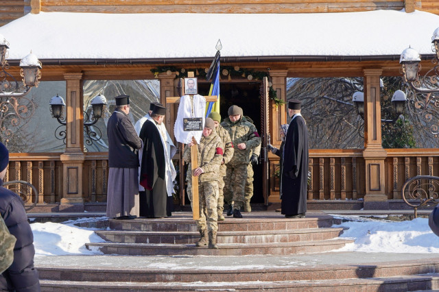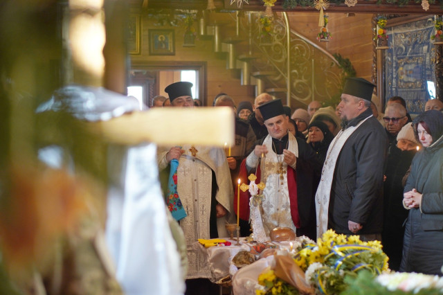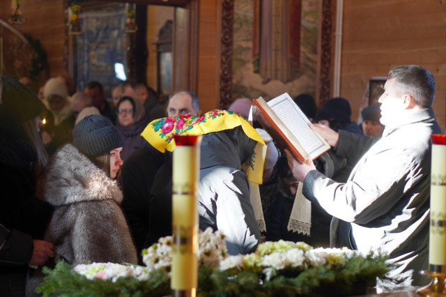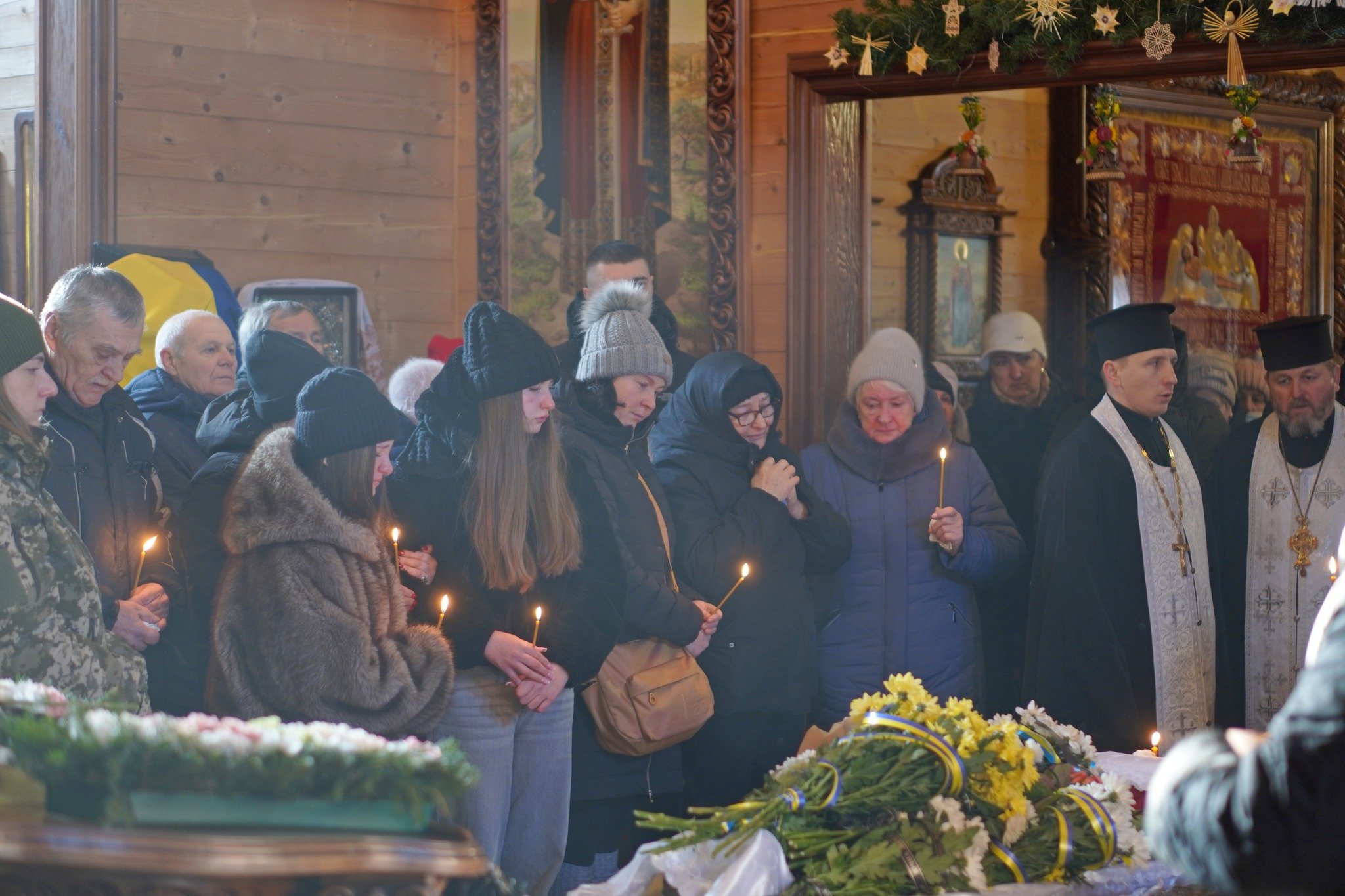 Чин похорону відбувся у храмі Віри, Надії, Любові та матері їх Софії, куди прийшли рідні, друзі покійного, представники міської влади, на чолі з міським головою Ігорем Пальонкою, побратими, односельці, а також небайдужі мешканці громади.