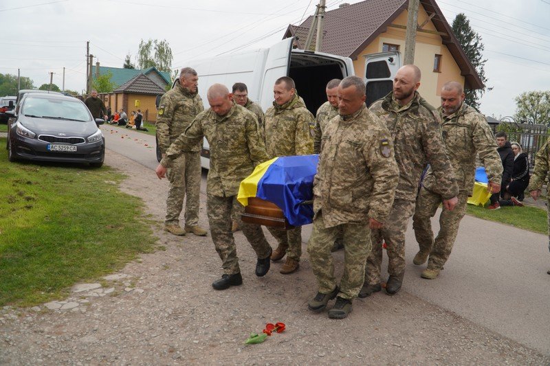 23 квітня встеленою весняними квітами дорогою, обабіч якої навколішки схилили голови мешканці громади, проїхав траурний кортеж із полеглим Героєм Ігорем Клапіюком. Домовина, вкрита синьо-жовтим стягом, востаннє прибула до його рідного дому на вулицю Андрія Войнаровського (колишня Берегового), що у Володимирі.