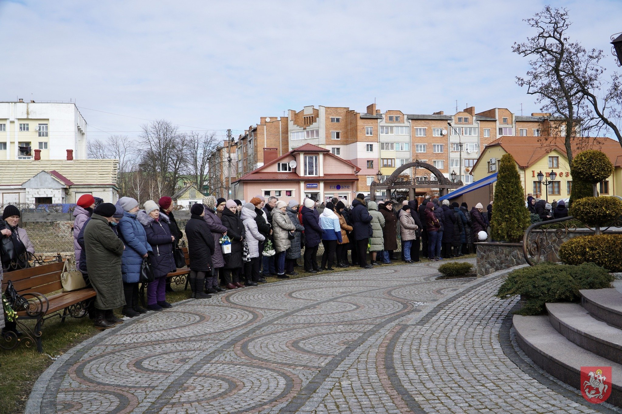 Попрощатись з бійцем прийшли рідні, близькі, друзі, однокласники, побратими та чимало містян. З прощальним словом виступили єпископ Володимир-Волинський і Турійський Матфей, священнослужителі, міський голова Ігор Пальонка та голова районної ради Віктор Хиць.