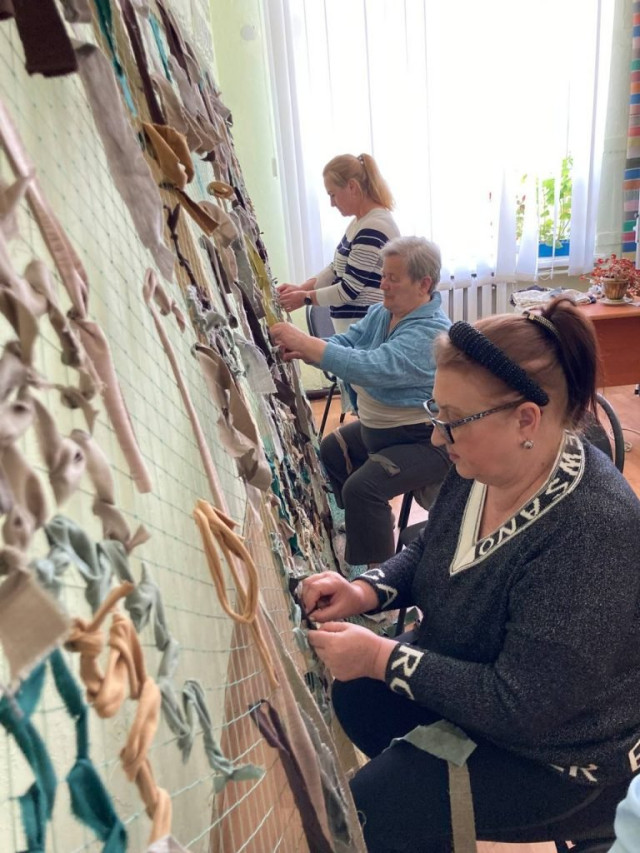 Протягом робочого тижня працівники терцентру кожну вільну хвилинку використовують для корисної справи. Також активно долучають до цього і пенсіонерів-слухачів університету третього віку. Всього за кілька днів жінкам вдалося виготовити дві добротні сітки, які уже поїхали на фронт, аби маскувати техніку наших воїнів від ворога.