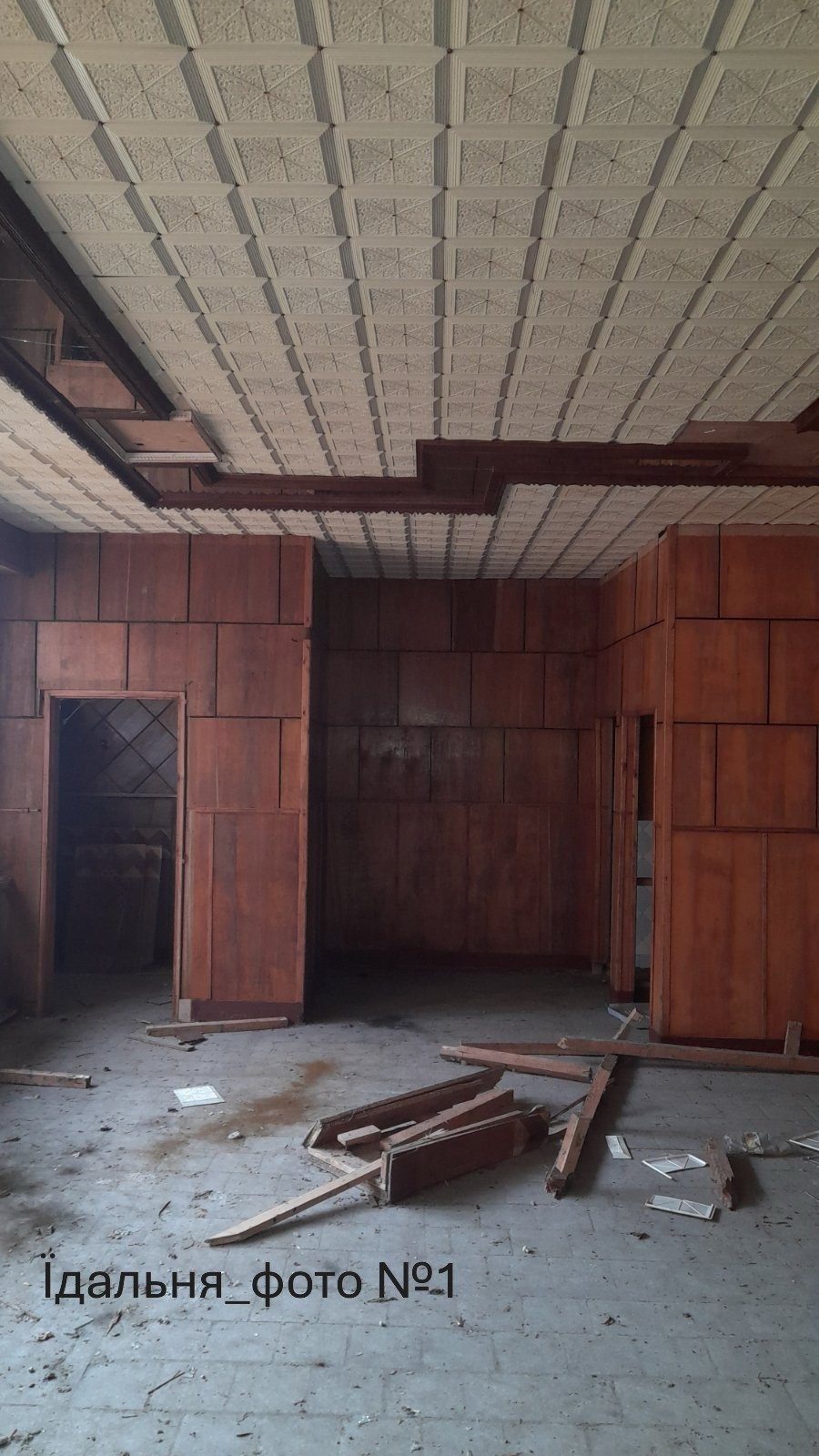 - їдальня загальною площею 371,6 кв. м з входом у підвал, сходами, ґанком, рік побудови – 1979-й, фундамент – бетонний, стіни – цегляні, підлога – бетонна, перекриття – залізобетонне, покрівля – шиферна;Читати ще: ФАП у волинському селі виставили на аукціон за 46 тисяч. Фото