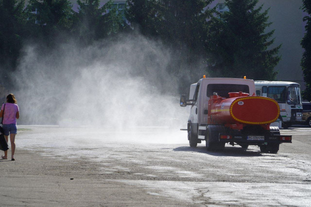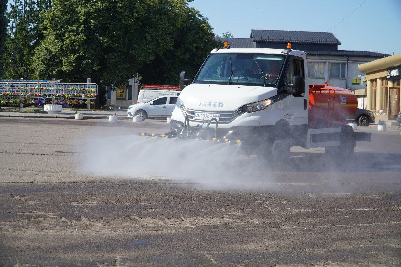 У Володимирі рятуються від 30° спеки: розпочали полив вулиць, парків та площі