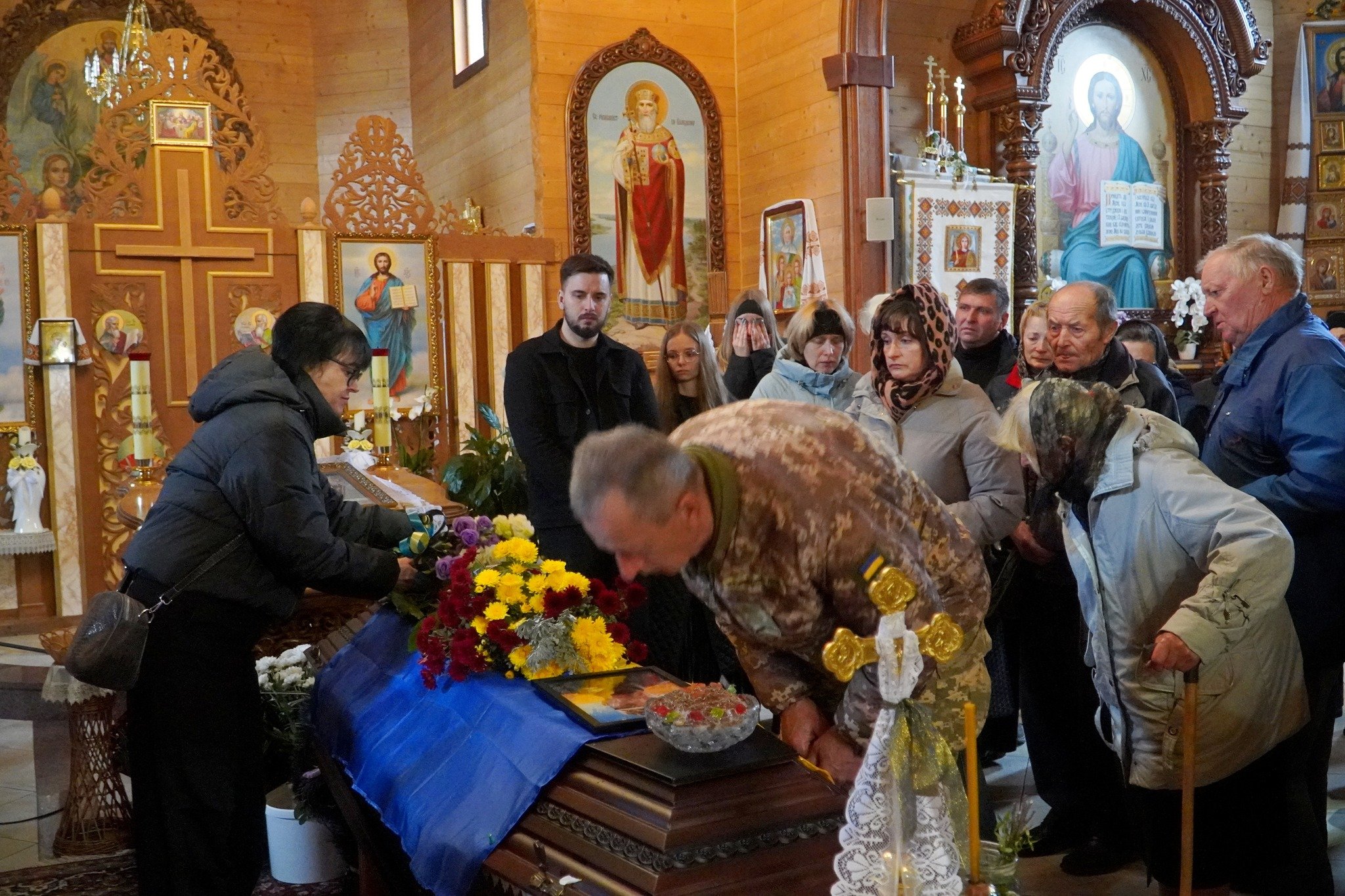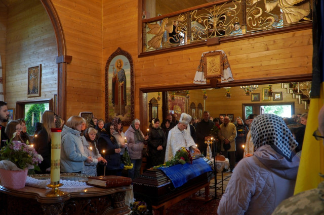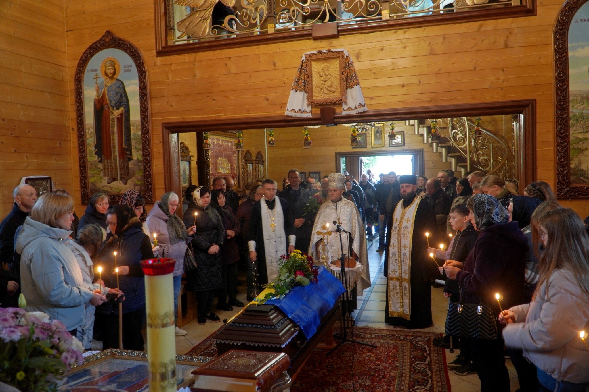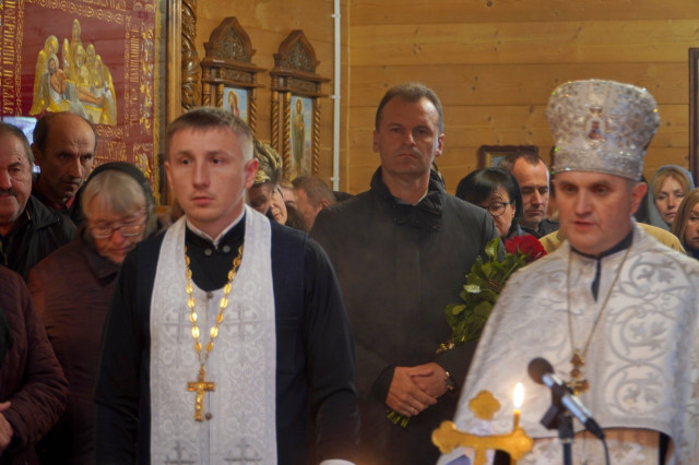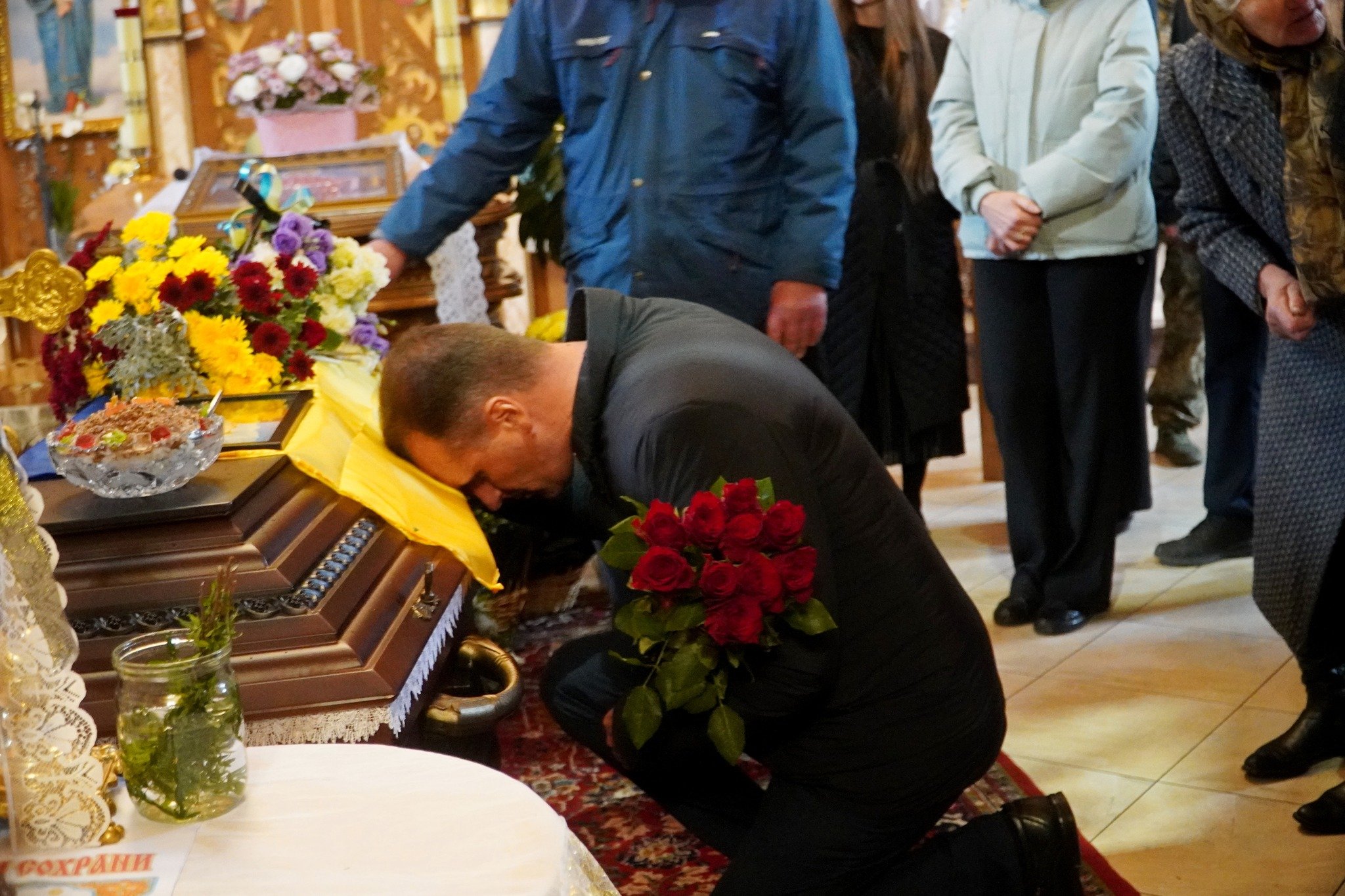 Більш як сотня людей прийшли до храму святих Віри, Надії, Любові та їх матері Софії, щоб віддати останню шану своєму близькому, другу, побратиму, однокласнику, колезі та знайомому. Згорьовані матір, дружина, донька та син, рідні, численні друзі й колеги, побратими Героя не стримували сліз під час прощання – усім Михайло запам’ятався надзвичайно доброзичливим і щирим чоловіком, тож біль втрати від того став іще сильнішим. Підтримати рідних у скорботний час прийшов і міський голова Ігор Пальонка.