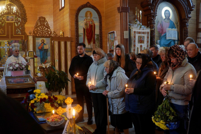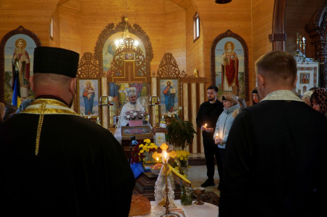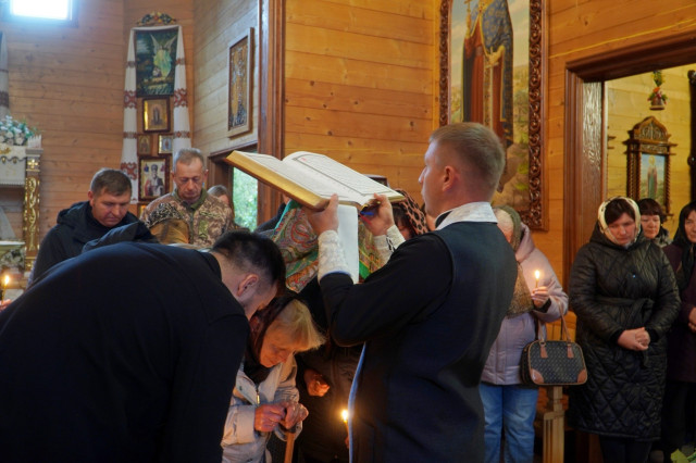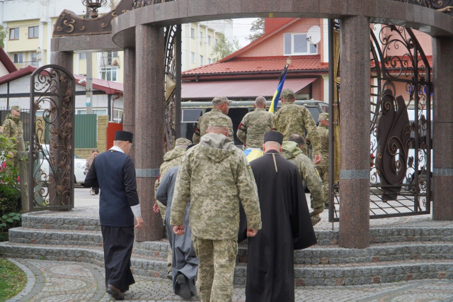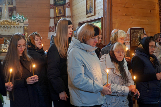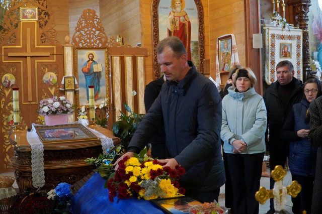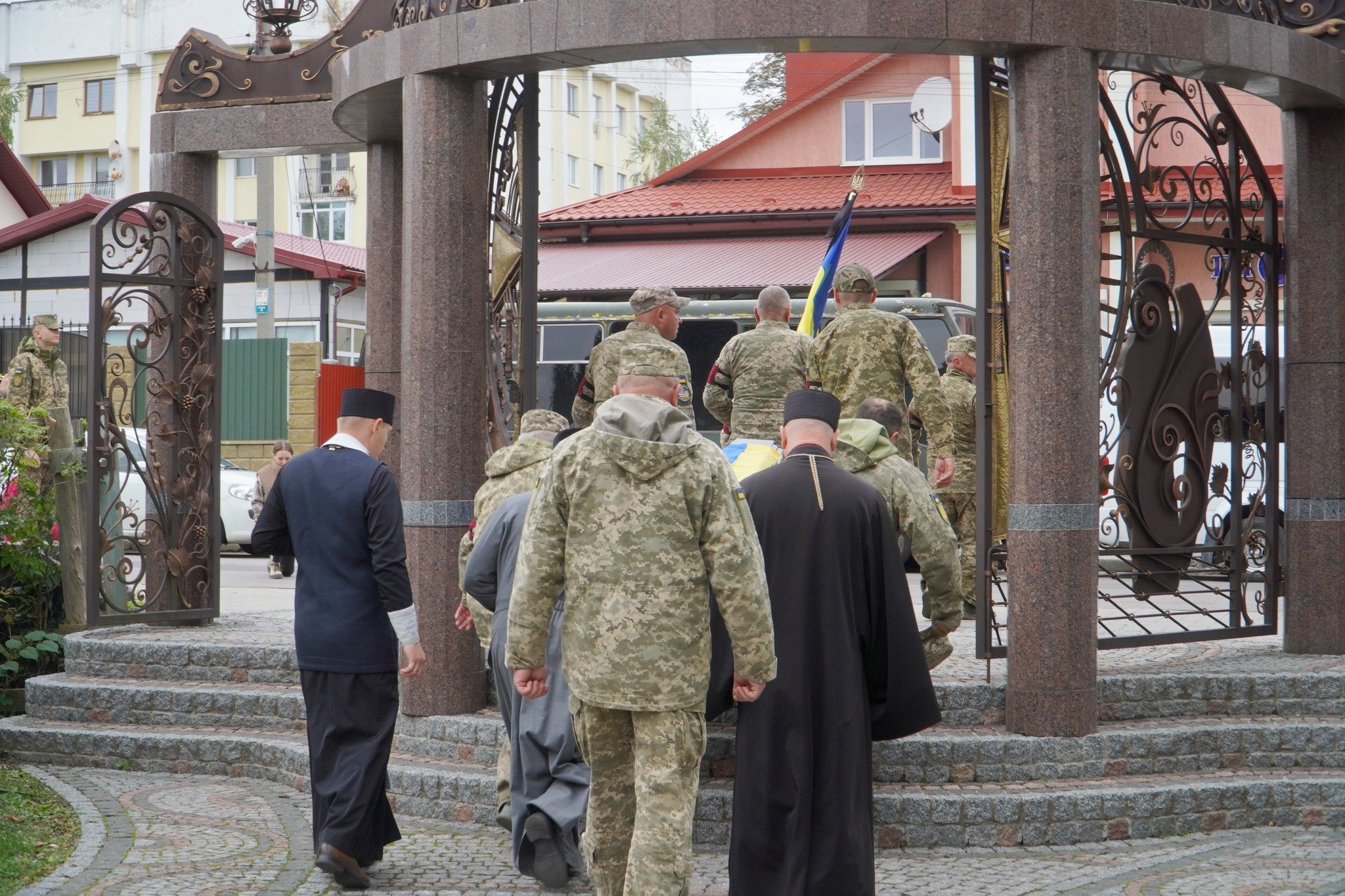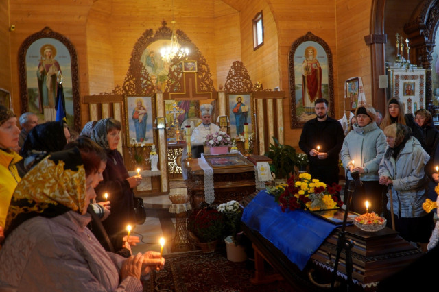 Більш як сотня людей прийшли до храму святих Віри, Надії, Любові та їх матері Софії, щоб віддати останню шану своєму близькому, другу, побратиму, однокласнику, колезі та знайомому. Згорьовані матір, дружина, донька та син, рідні, численні друзі й колеги, побратими Героя не стримували сліз під час прощання – усім Михайло запам’ятався надзвичайно доброзичливим і щирим чоловіком, тож біль втрати від того став іще сильнішим. Підтримати рідних у скорботний час прийшов і міський голова Ігор Пальонка.