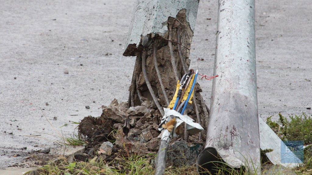 Близько 9:30 дві опори – металева й бетонна- ще висіли «вирвані» з землі на електрокабелях.