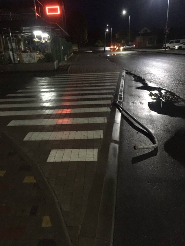 Автопригода сталася 22 травня близько 22:00 поблизу ЖК Яровиця. Volkswagen Passat B4 зніс знак пішоходного переходу і втік з місця пригоди.