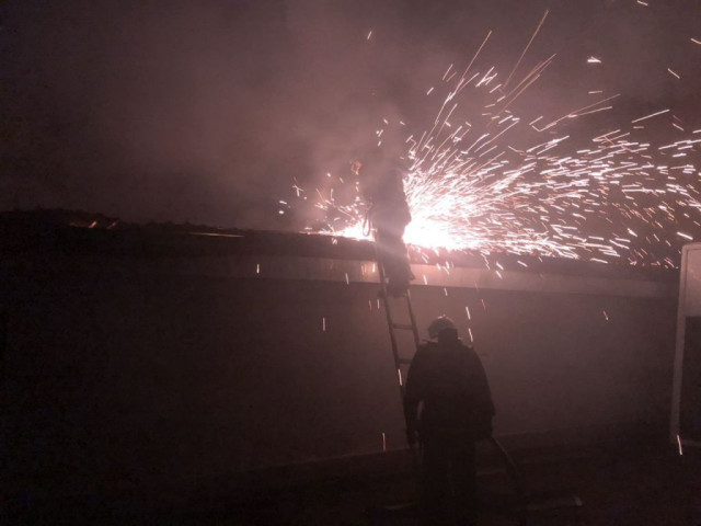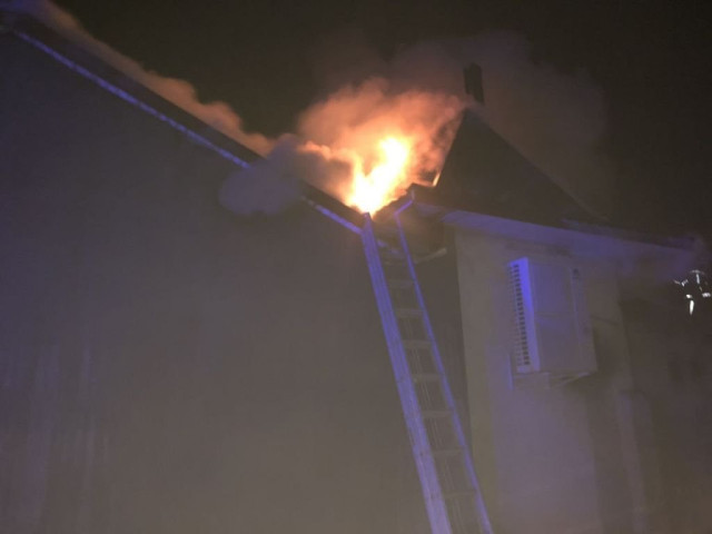 Стало відомо, що загорілася прибудова біля ресторану на вулиці Княгині Ольги, де зберігали дрова. Вогонь знищив частину покрівлі.