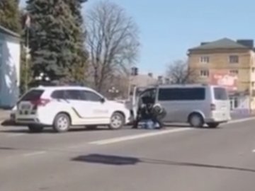 У Володимирі-Волинському мікроавтобус наїхав на поліцейського. Відео