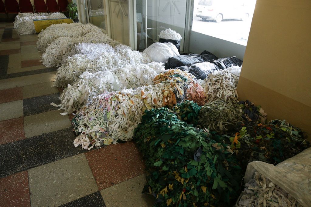 Тканину сірого, чорного, зеленого та коричневого кольорів збирають члени громадської організації «Крила матері» у Володимирі-Волинскому. Матерія потрібна для виготовлення маскувальних місток у зону проведення ООС.