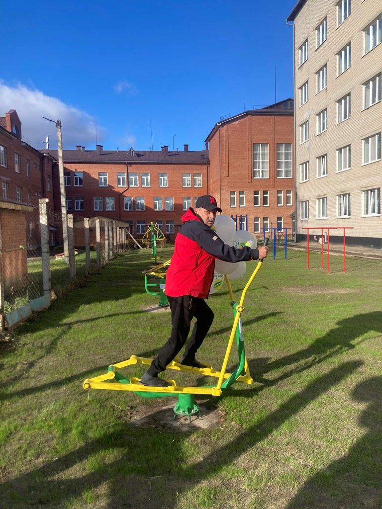 Задля успішної інтеграції дитячого та дорослого населення ВПО в громаду Володимирської міської ради, а також популяризації здорового способу життя, залучення молоді до активного відпочинку та виховання здорової нації на спортивному майданчику встановлено шість новеньких сучасних тренажерів, а також гойдалку, бруси та спортивний комплекс.