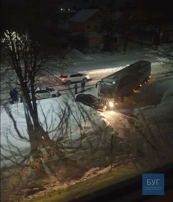 Близько 8-ої години ранку автобус, що потрапив в ДТП, витягнув інший.