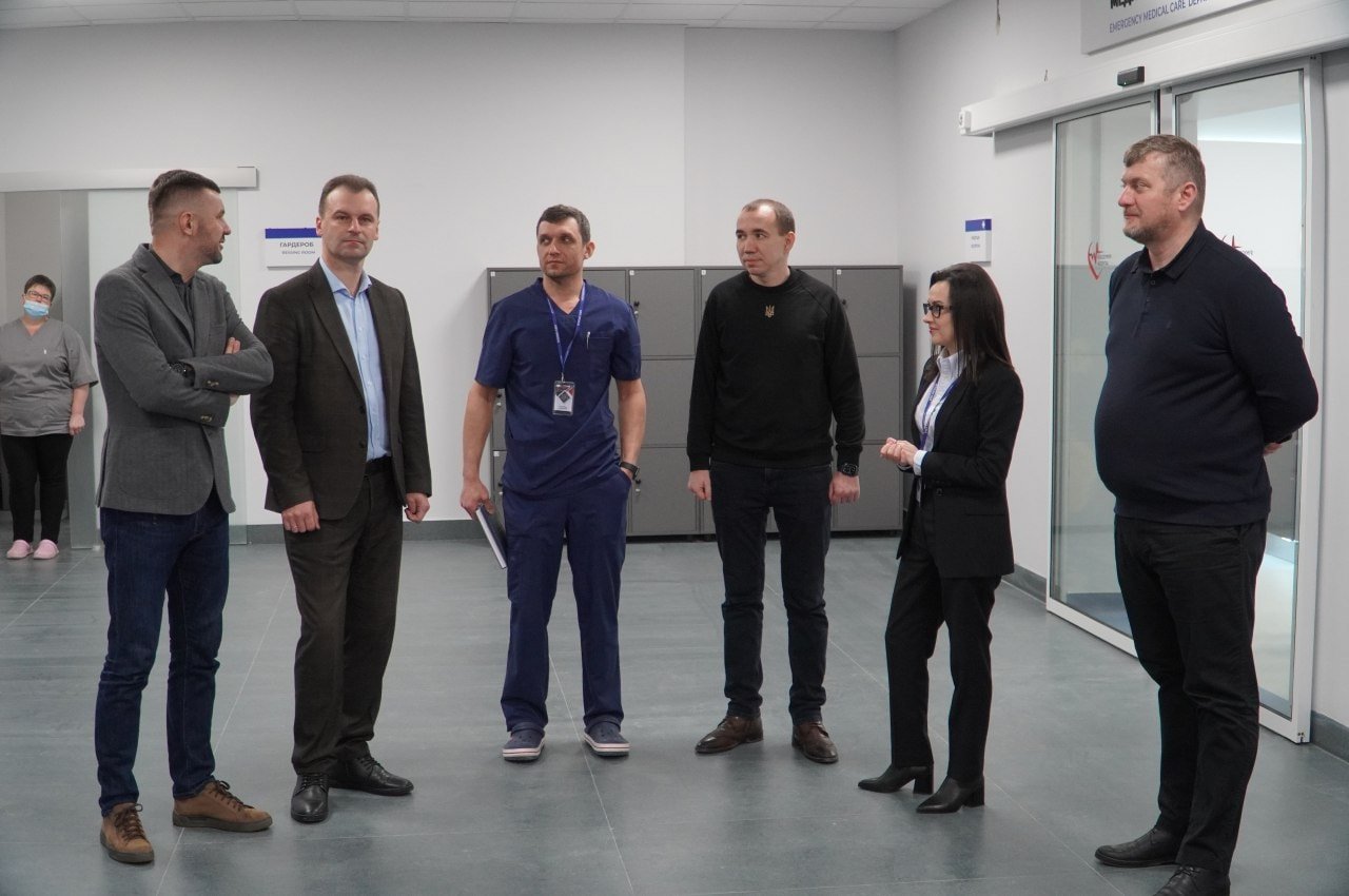 Сьогодні міський голова Ігор Пальонка та нардеп Ігор Гузь оглянули медичний заклад. Генеральний директор ТМО Тетяна Ващук провела екскурсію реконструйованим відділенням невідкладної допомоги.