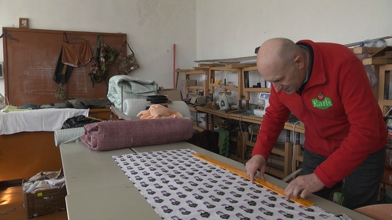 У колективі волонтерського ательє – вчителі ліцею, медична сестра місцевої амбулаторії, механік, говорить Микола Гесь, який після роботи кроїть швейні вироби. Чоловік каже: знаходить час для волонтерства, хоч сам виховує п’ятьох дітей.