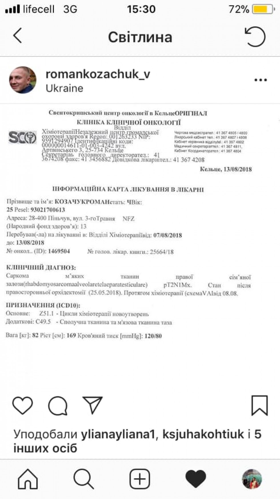 Роману Козачуку, який пройшов пекло АТО, діагностували саркому м’яких тканин правої сім’яної залози, інформує Район.Любомль.