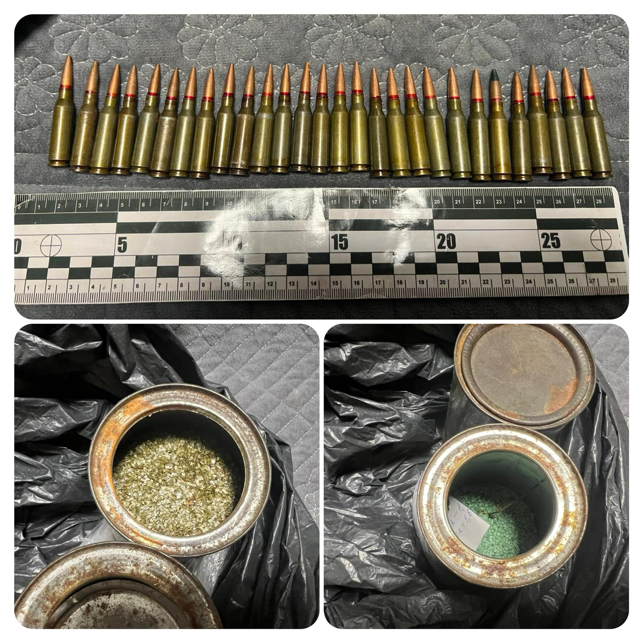 Працівники відділення поліції №1 (сел. Маневичі) Камінь-Каширського РВП під час проведення санкціонованого обшуку виявили та вилучили в жителя району 28 патронів калібру 5.45 та дві металеві банки з невідомою речовиною схожою на порох.