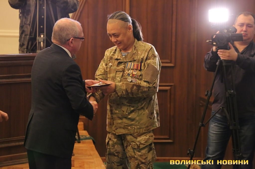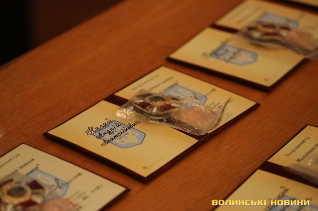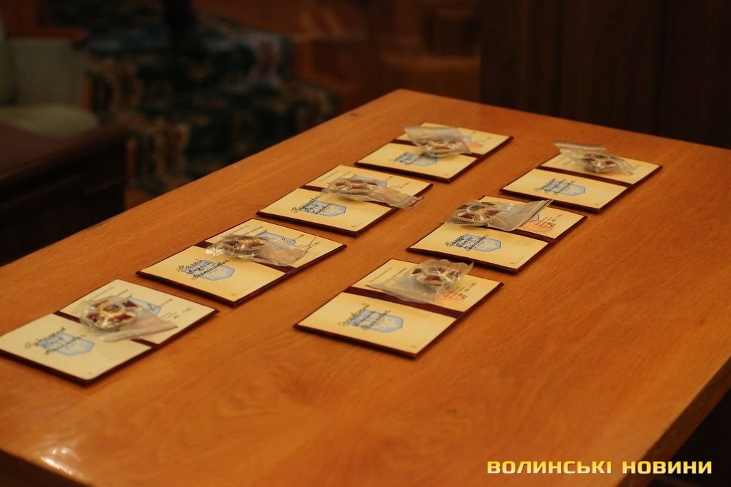 Тих, хто добровільно став на захист держави, коли їй загрожувала російсько-терористична агресія, привітали з їх святом, подякували за службу та вручили відзнаки. Їх отримали бійці Юрій Бубенщиков, Андрій Нагай, Юрій Надашкевич, Роман Орєховський, Петро Пащук, Андрій Омельчук та Володимир Решетняк. Також відзнаку передбачили для голови спілки воїнів АТО Волині Олегу Твердохлібу на псевдо «Сармат». Проте, через стан здоров’я відзнаку йому вручать пізніше.