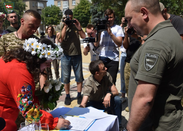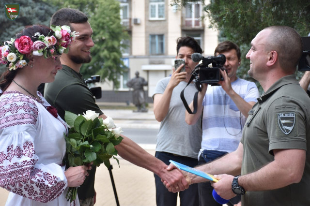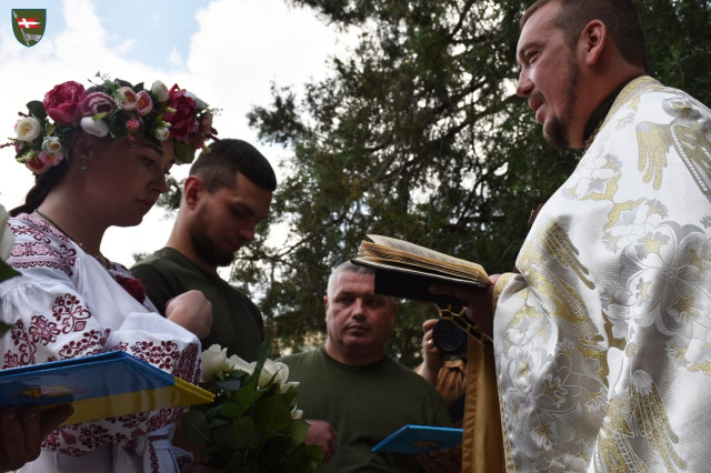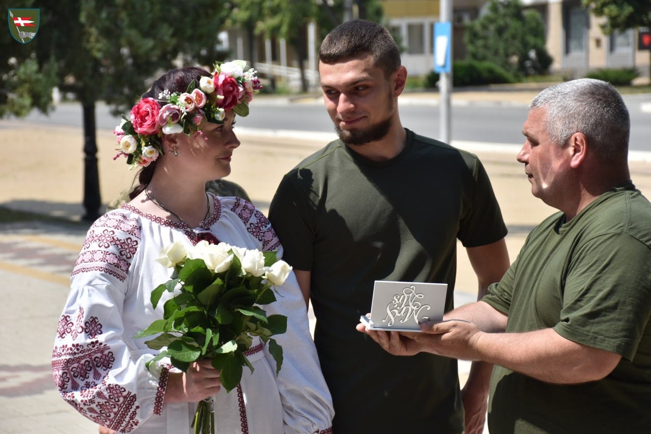 Обидві пари наречених – Віталій і Крістіна та Володимир і Христина – зустрілися на покохали одне одного на фронті. Тож їхні рішення поєднати свої долі за законом воєнного часу в районі ведення бойових дій засвідчив та зареєстрував командир Князівської бригади, полковник Олександр Охріменко, вручивши молодятам весільні подарунки та квіти.