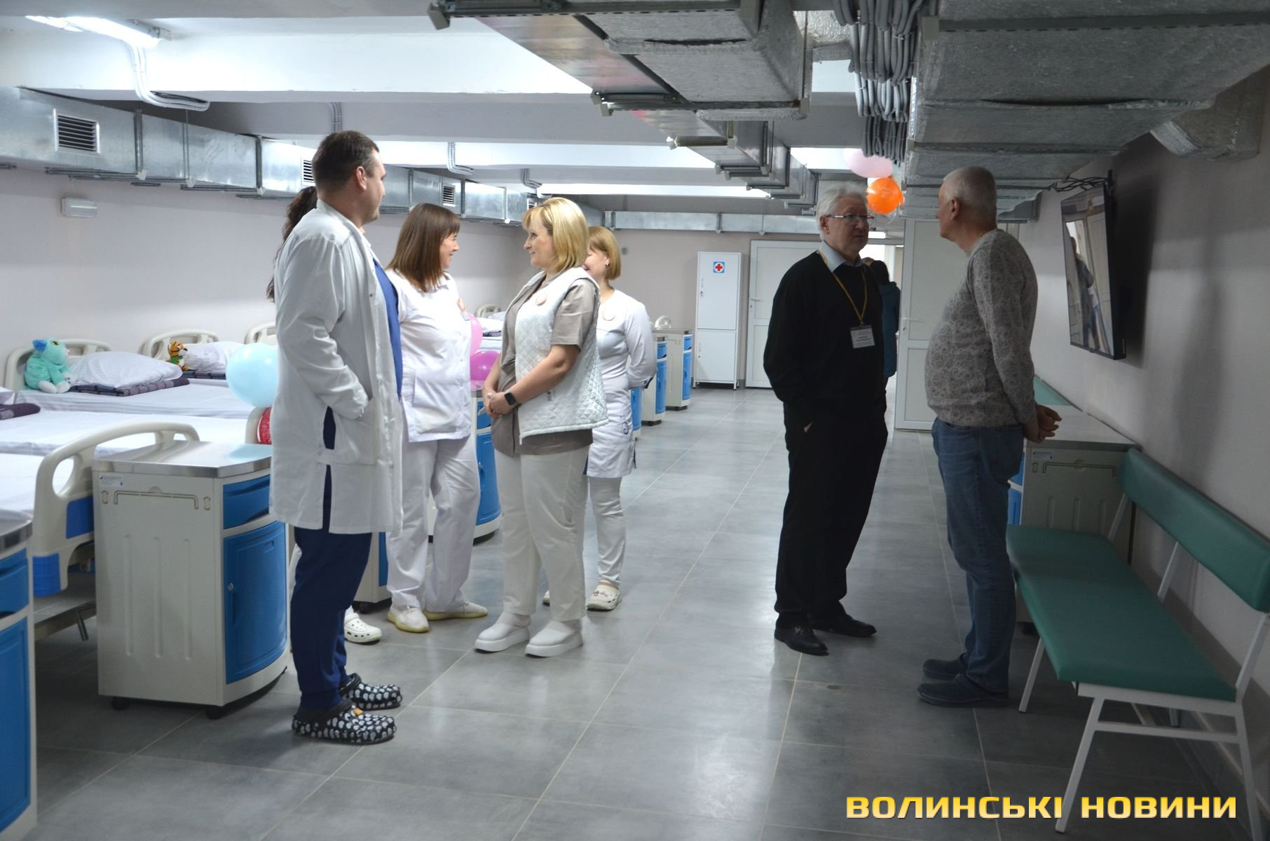 Оглянули укриття голова Волинської ОВА Іван Рудницький, голова Волиньради Григорій Недопад, нардеп Вячеслав Рубльов. Директорка КП «Волинське обласне територіальне медичне об’єднання захисту материнства й дитинства» Ірина Горавська показала відремонтовані приміщення.