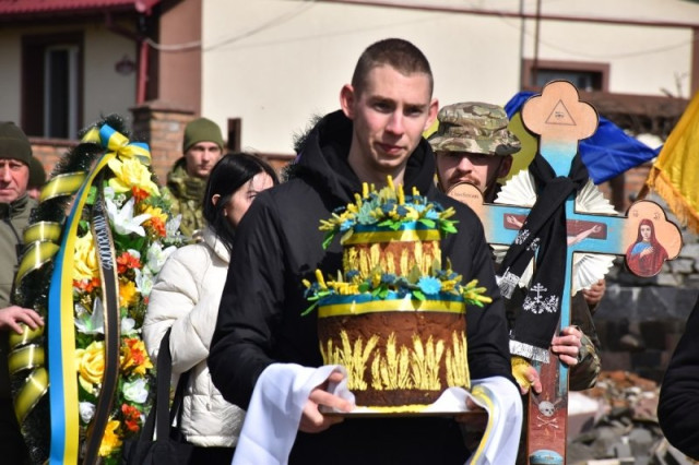 Прощались з Героєм, як належить, спільною молитвою, виконанням Державного Гімну України військовим оркестром під залпи почесної варти.