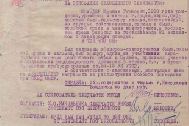 Попри відсутність доказів у справі, як і зазначено в архівних документах, Шимшона Шнайдера згодом ув’язнили до Луцької тюрми. У травні 1940 року його етапували до в’язниці в Києві, а справу направили на розгляд спецвідділу НКВД СССР.