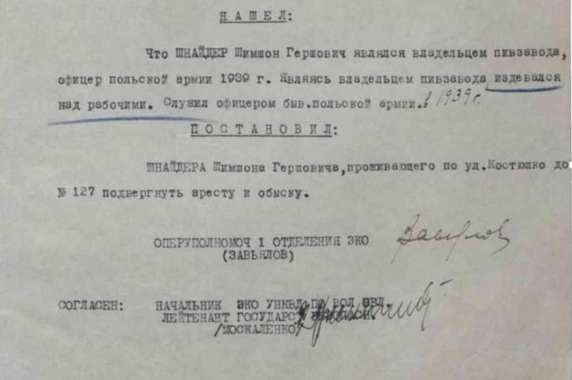 Шимшон Шнайдер – арештований працівник Луцького пивзаводу, співвласником якого був його батько.