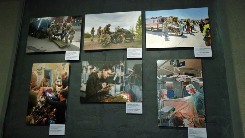 «Всі ці медики борються за життя кожного пораненого, люди під час війни одружуються, кожен захисник хоче повернутися до дому живим, до своїх рідних, мама кожна чекає свого сина. Це дуже чуттєва виставка, на неї дуже тяжко дивитися», – сказала жінка.В експозиції 84 світлини та 10 книжок, привезених з розбомблених книгозбірень, розповіла старша наукова працівниця обласного краєзнавчого музею Марія Фелонюк.Читати ще: Шматки російських ракет, БТР, форма Залужного: залишки війни у Луцьку. Фоторепортаж