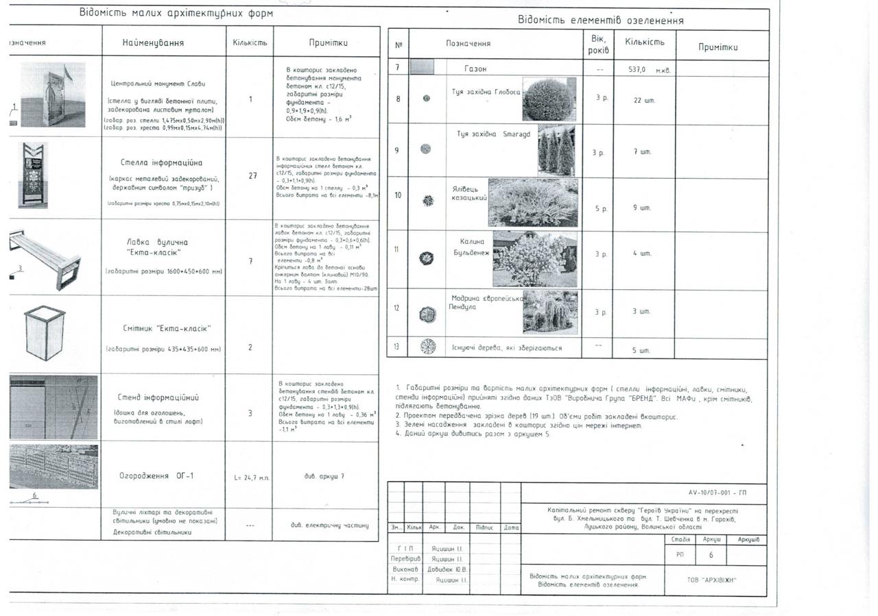 Як вказано в супровідній документації, капітальний ремонт скверу «Героїв України» в Горохові включатиме перенесення лінійно-кабельних споруд телекомунікацій, влаштування мощення доріжок з бетонної бруківки, мармурової гальки та бетонних плит, звалювання дерев, корчування пнів, посів газону, посадку кущів і дерев, облаштування центрального монумента слави у вигляді стели з бетонної плити, декорованої листовим матеріалом, облаштування інформаційної стели у вигляді металевого каркасу, декорованого тризубом, встановлення лавок, улаштування підпірних стін і огорожі, встановлення декоративних вуличних світильників тощо.Читати ще: У селах Ковельської громади відкрили стели пам’яті загиблим воїнам