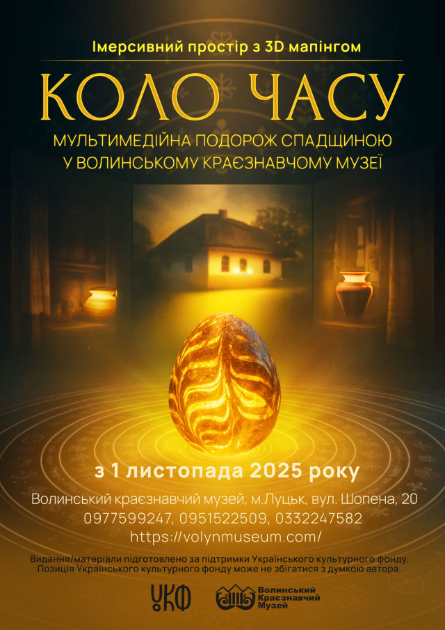 У Волинському краєзнавчому музеї від 1 листопада 2025 року буде доступна нова мультимедійна виставка «Коло часу: мультимедійна подорож спадщиною», що поєднує етнографічні експонати з технологією інтер’єрного 3D мапінгу. Це інноваційний простір, де минуле й сучасність переплітаються в одному художньому вимірі, а музейні експонати буквально «оживають» у світлі, звуці та русі.