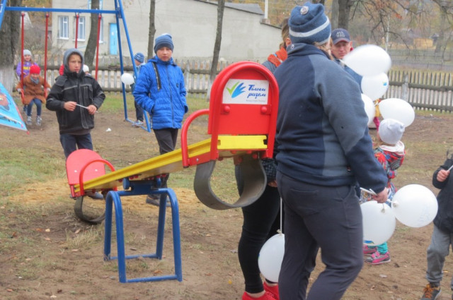 Подякувати за такий чудовий, казковий, довгоочікуваний подарунок прийшла малеча, батьки, педагогічний колектив школи, а маленькі жителі села вмить заполонили острівок розваг.