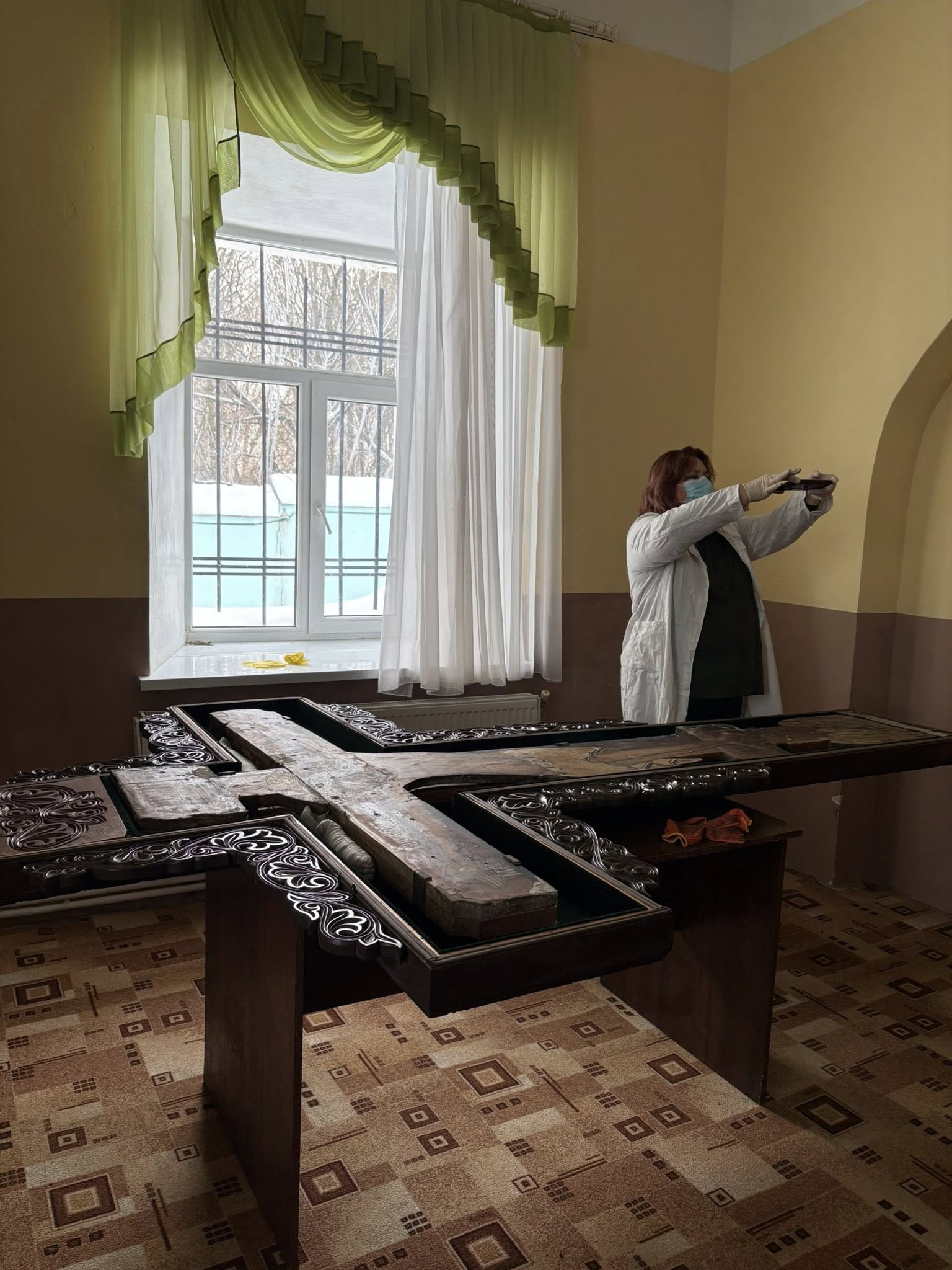 Насамперед реставратори виконали невідкладні консерваційні роботи на унікальній пам’ятці українського іконопису – великоформатному «Розп’ятті» 15 століття. Ікону демонтували зі стіни та перенесли до приміщення зі стабільною температурою, належним рівнем вологості та охороною.Читати ще: Завершився договір оренди: монастир на Ковельщині хочуть передати в користування ПЦУ