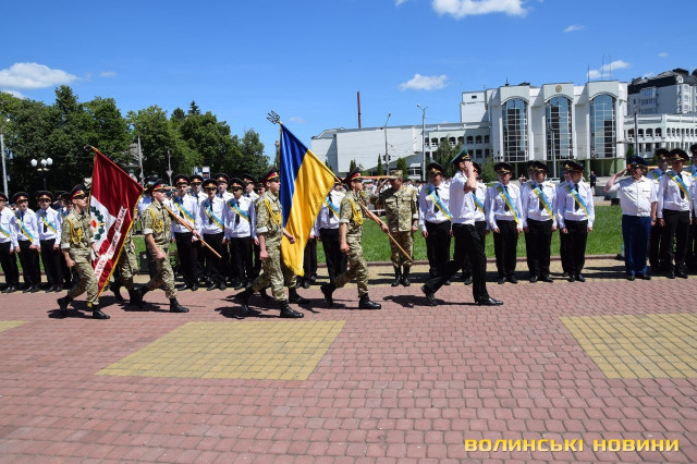 Урочисті заходи з нагоди 16-го випуску ліцеїстів Волинського обласного ліцею з посиленою військово-фізичною підготовкою ім. Героїв Небесної Сотні відбулися сьогодні, 3 червня, на Київському майдані у Луцьку.