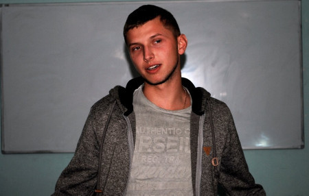 «Моя підготовка – це рік строкової служби перед мобілізацією, іншої підготовки не було. Щодо харчування, то не було нічого, от, десь по дорозі наберемо сухпайків за нормами на тижнів два, і жили так на них місяць-півтора. З водою теж були проблеми, шукали, де могли. Раз біля одного села була водонапірна башта, у ній була зелена вода, жаби плавали, але нічого, іншої не було, ми її набирали, і щось на ній готували. А щоб триматися духом, "щоб дах не з’їхав", ми постійно жартували, з усього, навіть, коли обстріл був. Це спочатку було страшно, що аж тіпало, а потім звикаєш», - розповів боєць 51-ї окремої гвардійської Перекопсько-Харківської Празько-Волинської ордена Леніна двічі ордена Червоного прапора ордена Суворова і Кутузова механізованої бригади Сухопутних військ Збройних Сил України.Проводжали Максима Лящука стоячи і під оплески.Після розмови студенти зробили спільну світлину на пам’ять, а потім дівчата фотографувалися з Максимом - від них відбою не було.