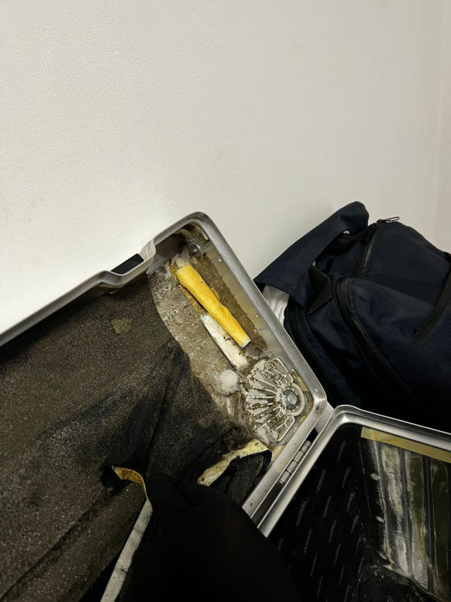 Перевіривши порожню валізу, оглядова група виявила в ній сторонні вкладення. Під внутрішньою обшивкою знаходився згорток з марихуаною. В іншій валізі оглядовики знайшли ще три пакунки та пластикову баночку з порошкоподібною та кристалічною речовиною білого кольору. Їх латвієць старанно приліпив до стінки на двосторонній скотч.