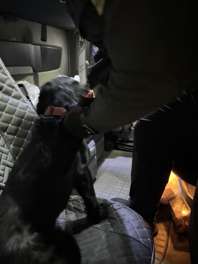 У суботу ввечері на прикордонний контроль прибув вантажний автомобіль марки Volvo під керуванням 42-річного мешканця Чернігівської області. Під час огляду транспортного засобу службовий собака, натренований на пошук наркотиків, зреагував на кабіну авто.